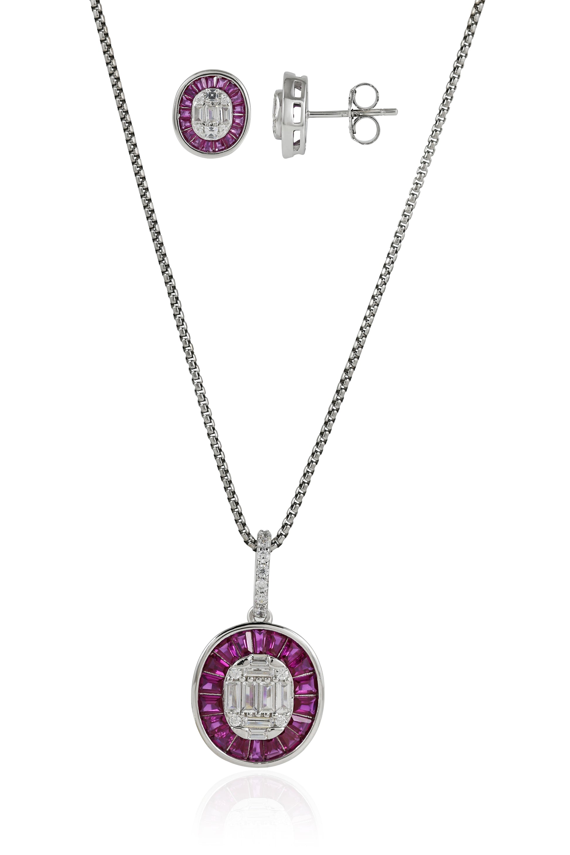 Baguette Cut CZ Diamonds Pendent Set with Earrings