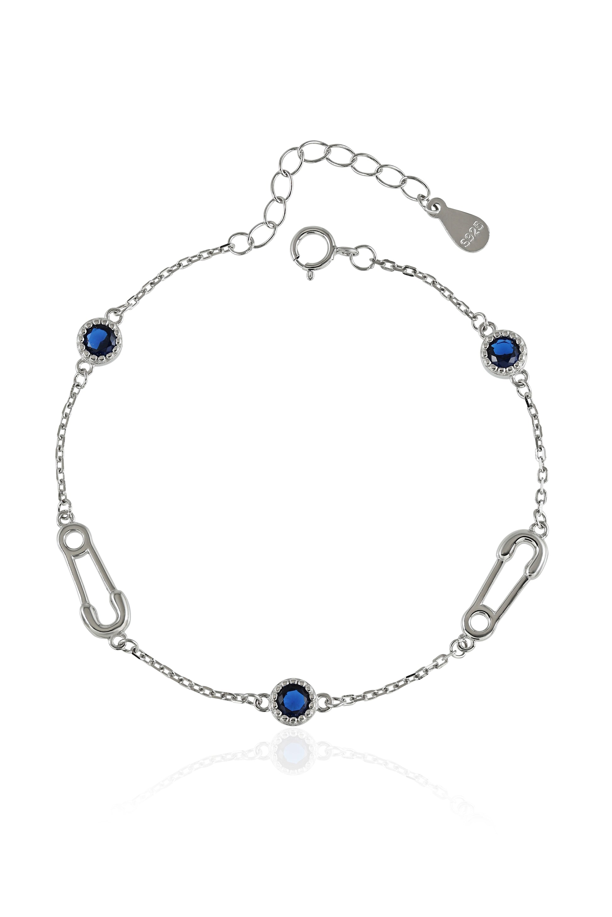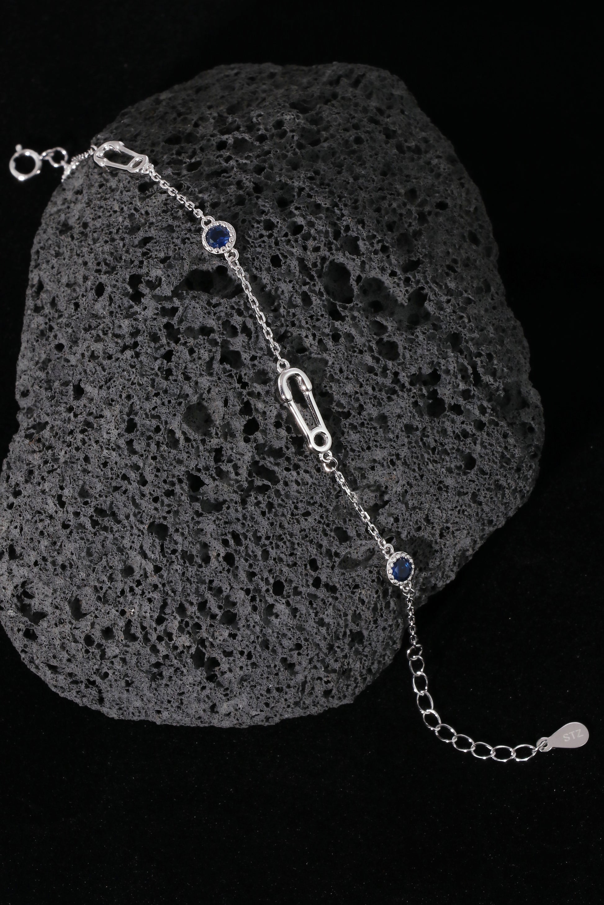 Charm chain silver bracelet hallmarked in 925 pure silver in rhodium plating with AA+ Cubic Zirconia stones.