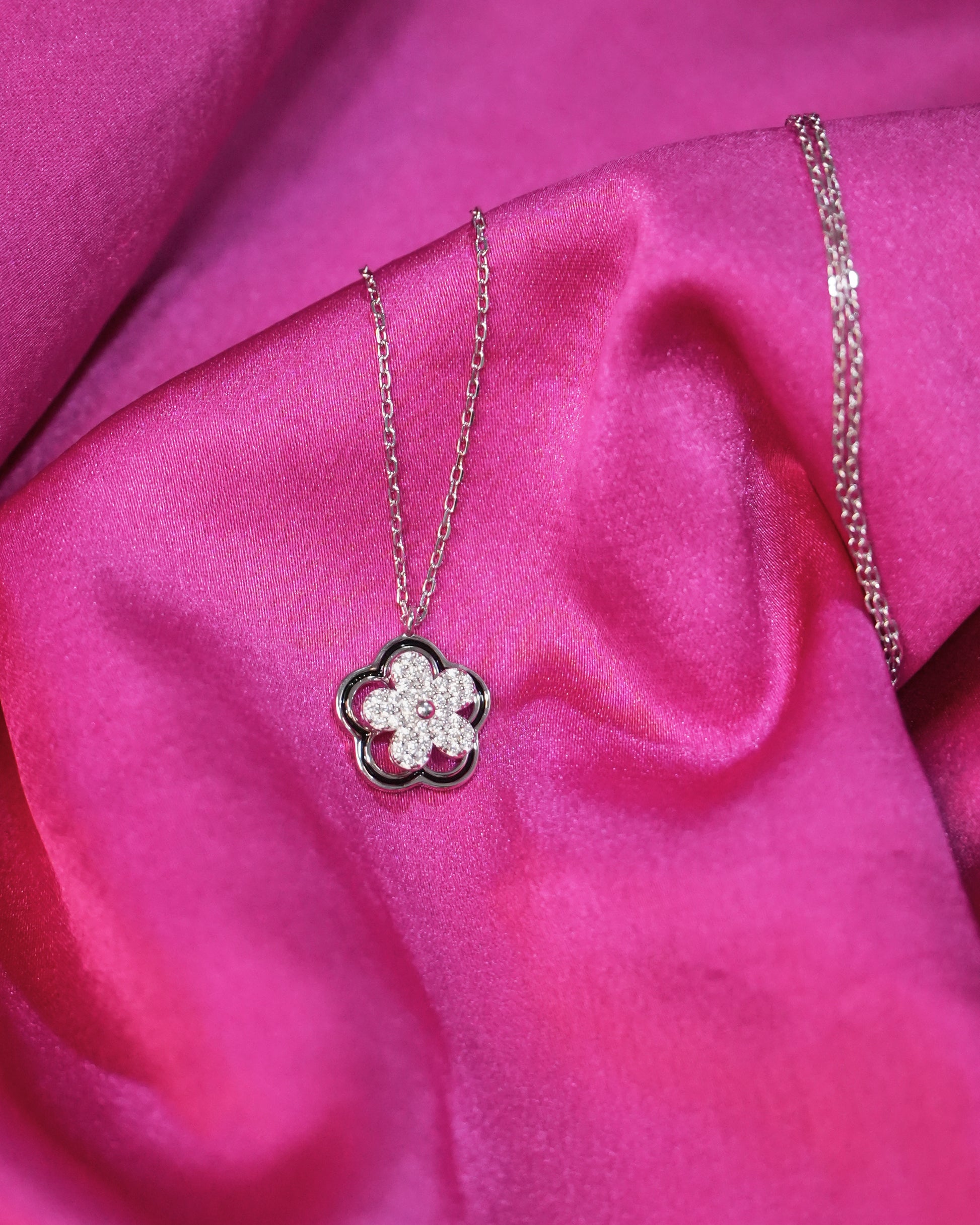 Fidget daisy nest chain pendent set hallmarked in 925 pure silver in rhodium plating with AA+ Cubic Zirconia stones, fidget flower spinner.