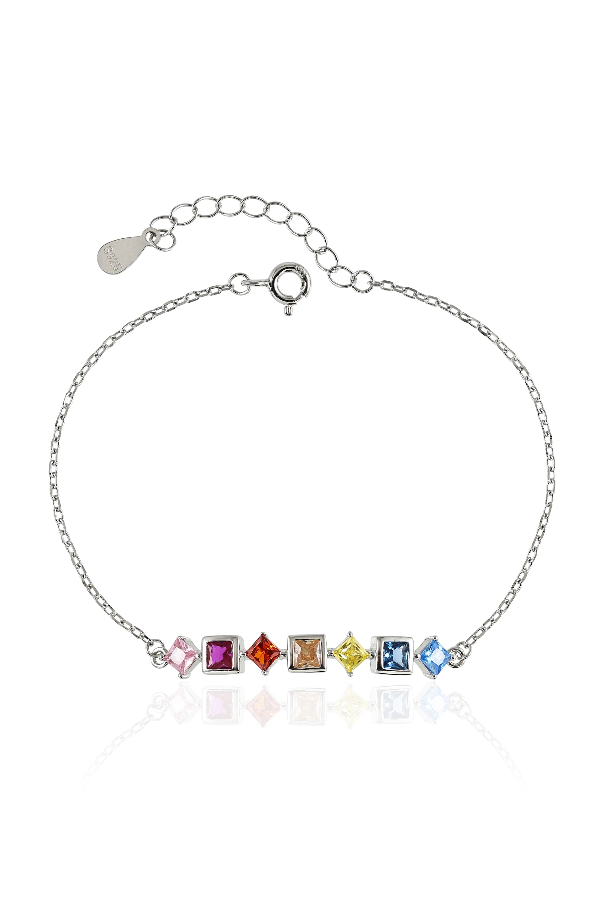 Multi colour delicate CZ bracelet hallmarked in 925 pure silver in rhodium plating with AA+ Cubic Zirconia stones.