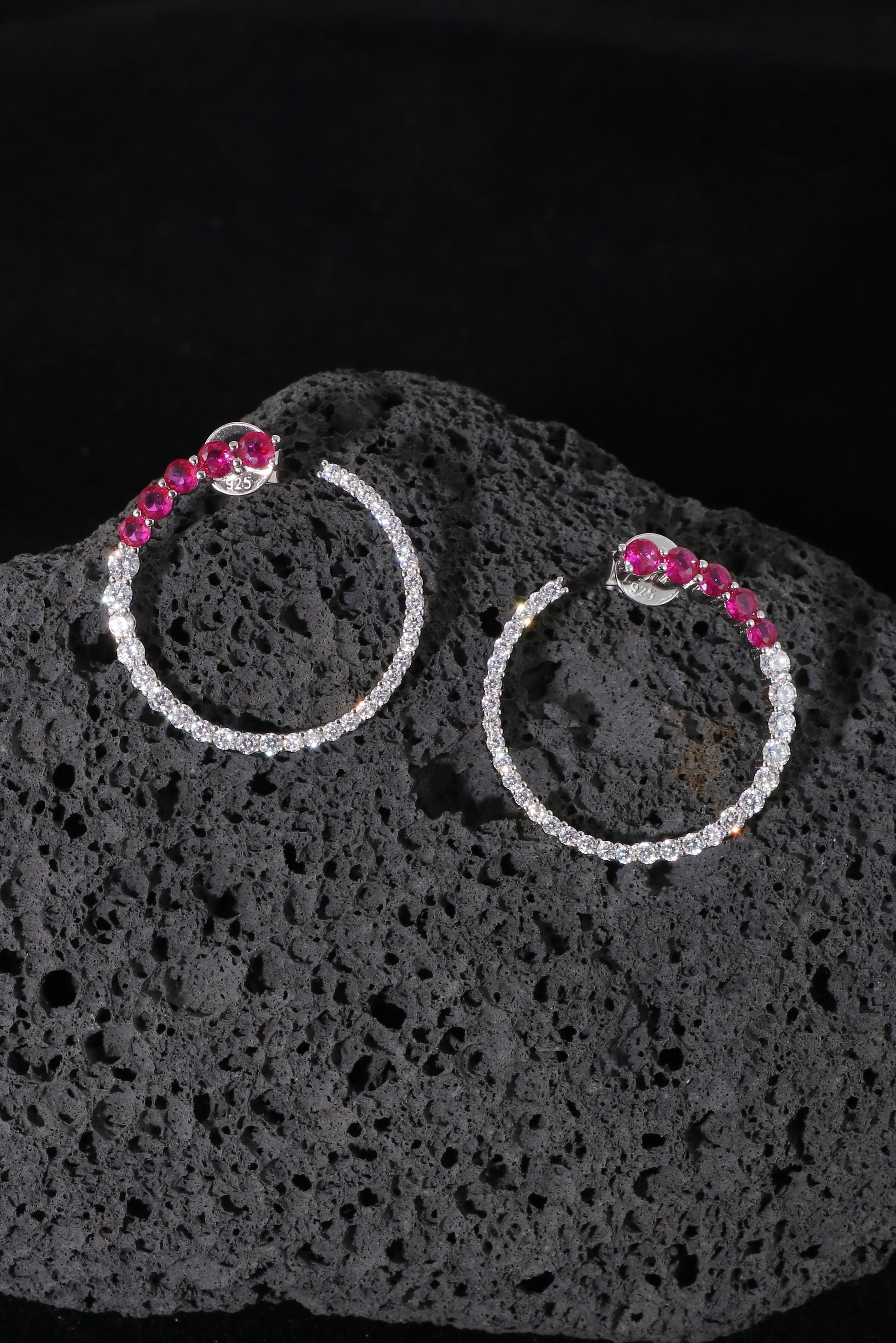 Sparkling ring pattern earrings hallmarked in 925 pure silver in rhodium plating with AA+ Cubic Zirconia stones.