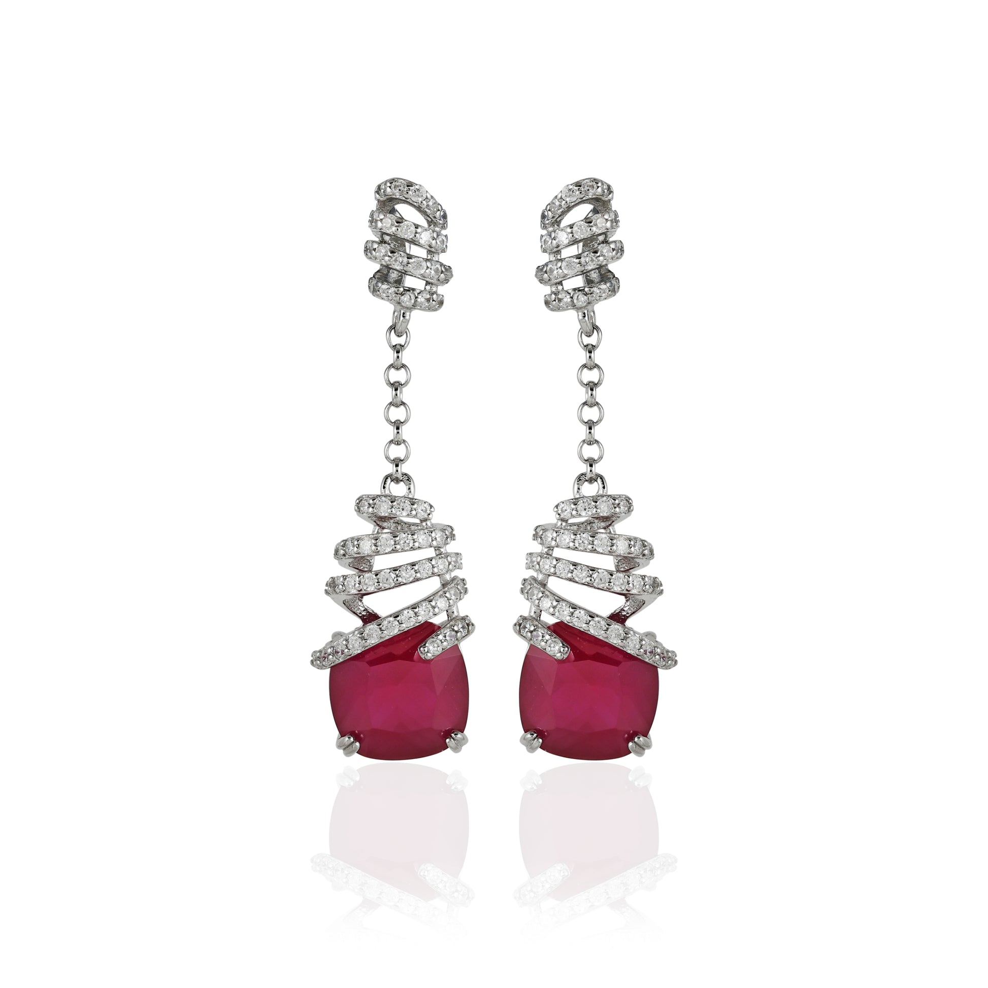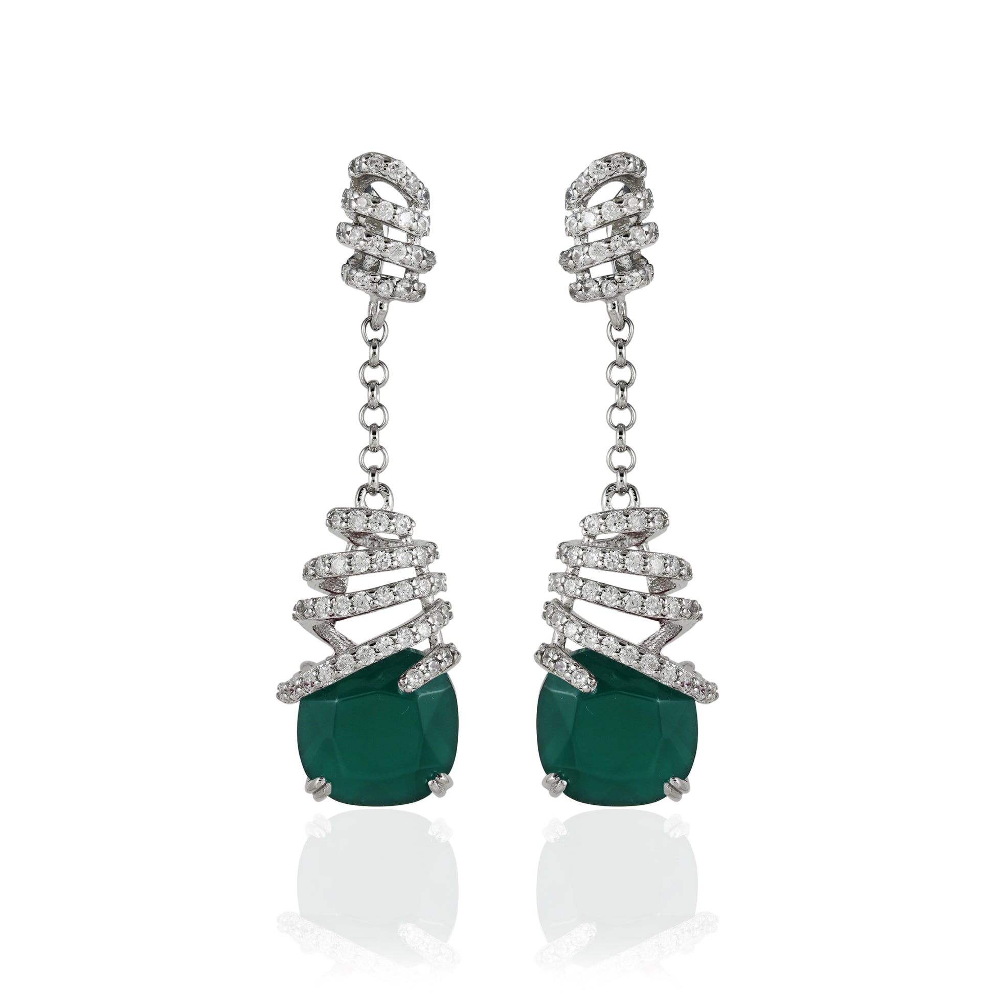 Spiral silver drop earrings hallmarked in 925 pure silver in rhodium plating with AA+ Cubic Zirconia stones.